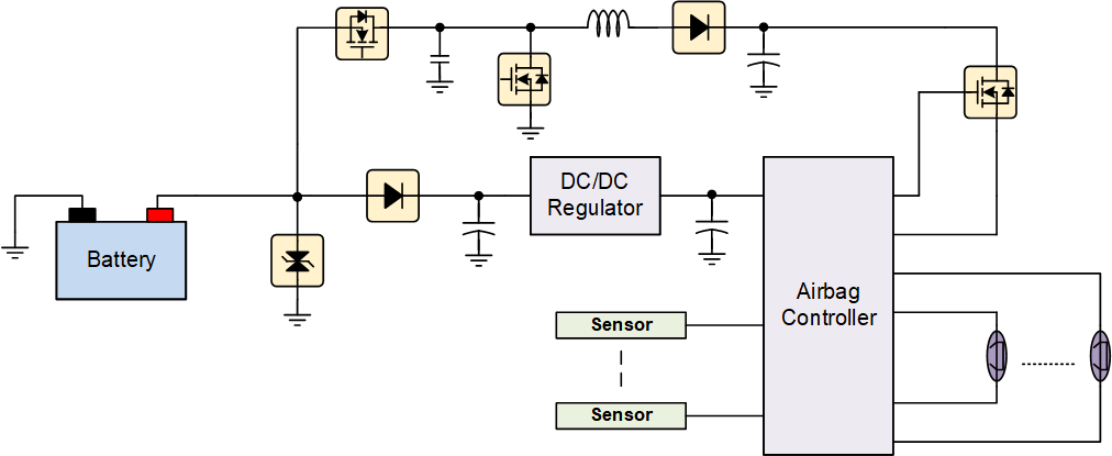 The signal transmission between impact sensors, the ACU, and the airbag module must be dependable and precisely timed, especially in the event of a collision. TVS diodes and backup power supplies, typically capacitors, are essential for protecting the system from voltage spikes and ensuring continuous operation.