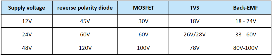 Normally the components selection for industry Fan Single phase H-bridge BLDC motor needs to consider Back-EMF robustness as shown in Table 2. 24V motor will have 60V Back-EMF threat and it will use TVS with VBR=28V to clamp this Back-EMF to 33V for protecting the 60V MOSFET. If it adopts Super Clamp TVS LTD7S24CAH, it could clamp Back-EMF to 25V. That brings benefits: 60V MOSFET may exchange to 40V MOSFET and 50V Capacitance may exchange to 35V Capacitance.