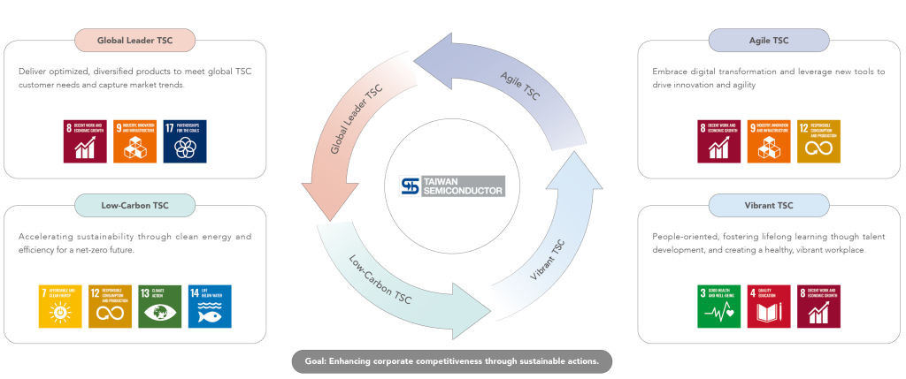 Against this backdrop of intersecting global transformations and environmental urgency in 2024, TSC advanced its sustainability governance efforts, reinforcing both organizational resilience and corporate responsibility. Centered around four strategic pillars—deepening core business, accelerating low-carbon transition, strengthening governance, and fostering environmental inclusiveness—TSC is methodically building the essential capabilities for sustainable operations.
