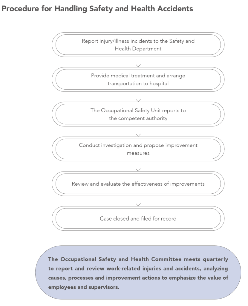 Together, they review various safety and health issues to ensure a safe working environment for employees. In addition, TSC provides feedback channels such as employee suggestion forms, communication logs, complaint channels, health questionnaires, and employee suggestion boxes to facilitate smooth communication with employees. Based on stakeholder feedback, adjustments and improvements are implemented promptly.