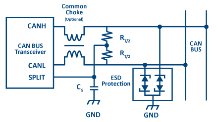 Figure 2: Typical application for ESD protection of two automotive CAN Bus FD lines